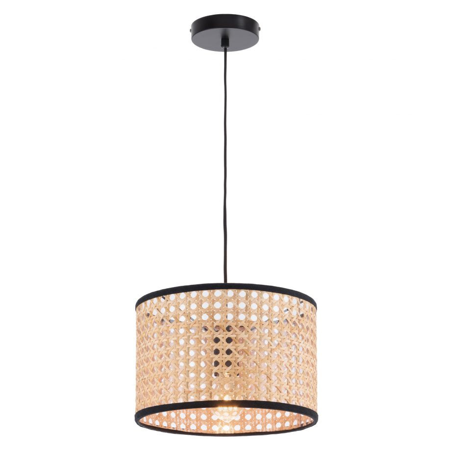 Natural Woven Rattan ShadeBlack or White Fabric TrimClear PVC Backing150cm Fabric CordSuits E27 max 60W Globe (Not Included)